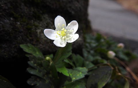 | 春に咲く花を探しに小雨が降る中、出かけることにしました。 |