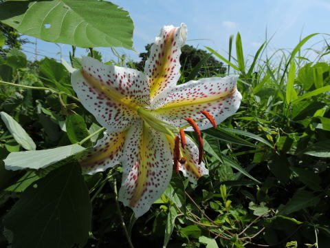 | 青空に山百合のはな ![]() こちらは竹藪から顔を出す ![]() オオバギボウシ ![]() 花の色が少し異なっています ![]() |